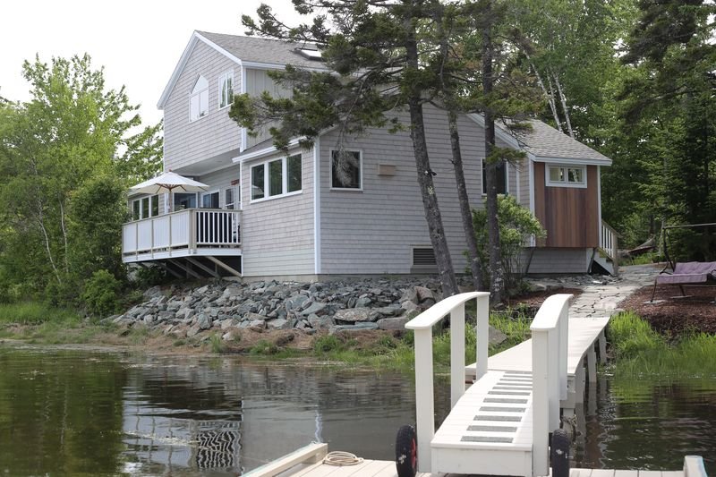 Discover Sea Breezes, an enchanting waterfront cottage where the ocean meets your doorstep at high tide. This inviting retreat features two well-appointed bedrooms and three full bathrooms, comfortably accommodating up to four guests. The first-floor master suite boasts a luxurious king bed, flat-screen TV, and an elegant bathroom with dual shower heads and double vanity. Upstairs, find a versatile bedroom with two twin beds and a sleep sofa, plus its own private bath. A third bathroom with shower and convenient washer/dryer completes this thoughtful layout. Each morning, savor your coffee on the private east-facing deck as the sunrise illuminates the water before you. Enhance your coastal experience with the shared dock, rowboat, and kayaks available for exploring the pristine waters. Sea Breezes offers that perfect blend of comfort and coastal immersion for an unforgettable Maine getaway